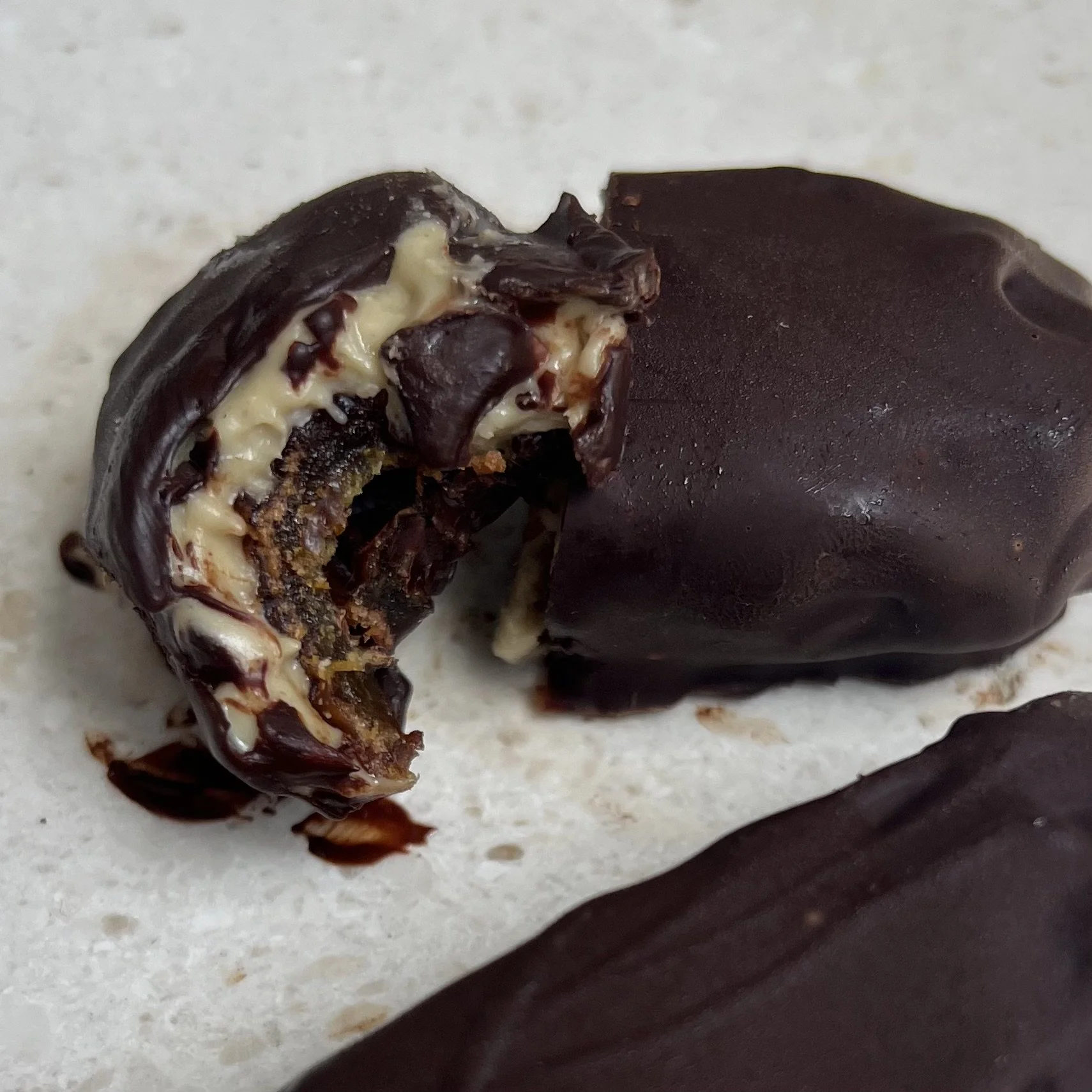 If you want a thicker caramel layer but you know medjool dates can trigger spikes for you, or you just want to be careful, use deglet noor dates, which are much lower in sugar than medjool, but still provide that classic caramel flavour and bite.