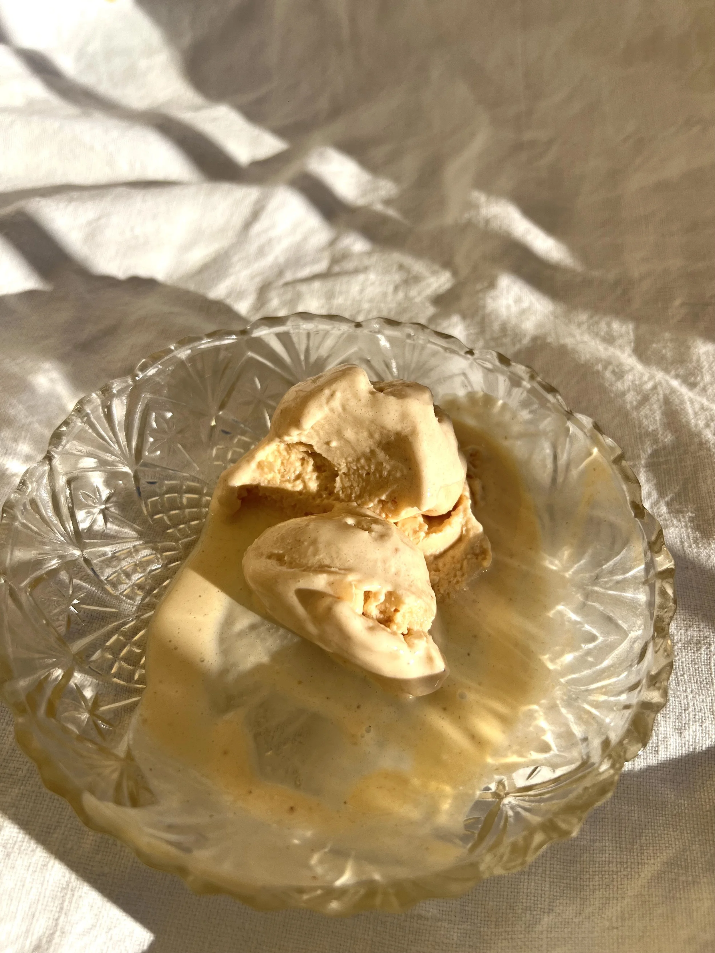 So, here she is. A classic ‘Cornish’ Vanilla Ice Cream: yellow, creamy and rich, but with a probiotic tang, naturally sweetened and protein rich. The perfect accompaniment to your fall bakes.